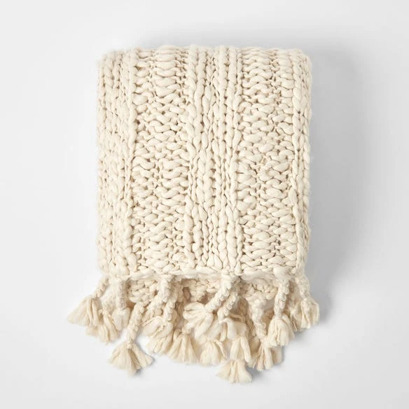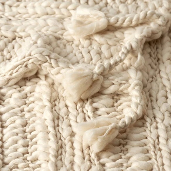 The perfect addition to your bedroom or living room, the cream Claudine Hand Knit Throw will add texture to your home. This throw has been beautifully hand knitted and is super cosy and warm. Available in seasonal shades and finished with tassels, this versatile throw will complement any home.