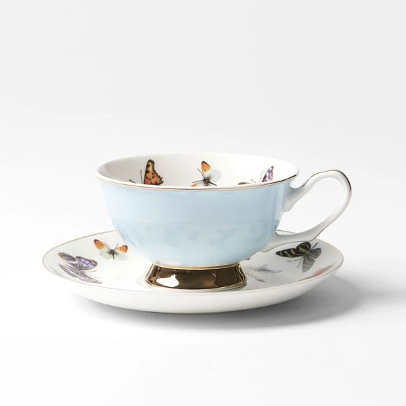 A lovely gift, the Miss Butterflies Teacup & Saucer features gilded edges and feminine details.
