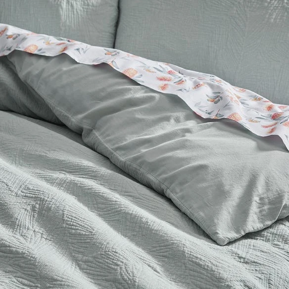 Create a coastal oasis in your bedroom with the Palm Leaf quilt cover. A restful palm leaf design is featured in soft sage tones and finished with a printed reverse.