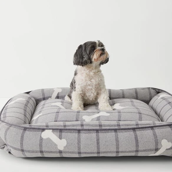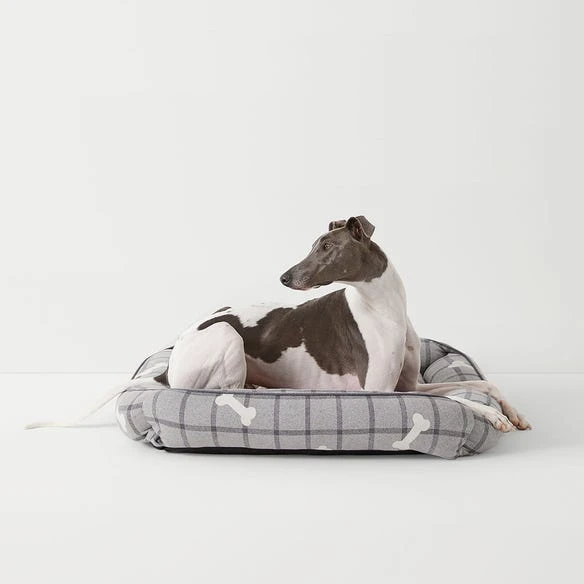 Create the perfect space for your furry friend to relax with our large Premium Pet Bed. Featuring a grey check pattern with a dog bone design, this dog bed is crafted from cotton and polyester to keep your dog comfy and cosy.
