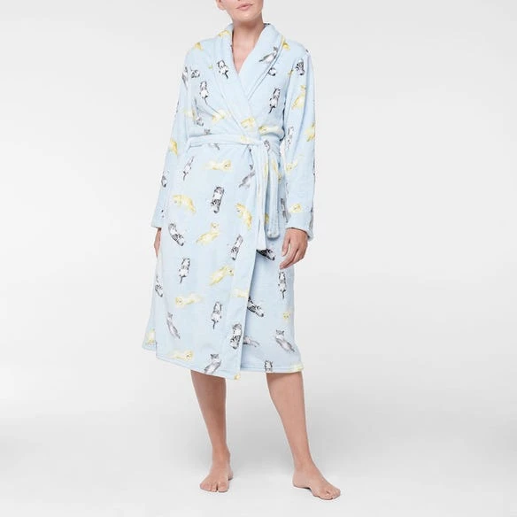 Stay warm and cosy with the Sleepy Cats bathrobe. Luxuriously soft to the touch, this bathrobe features a stylish shawl collar making it the perfect companion for crisp mornings and cool nights. Whimsical and inviting, this bathrobe is available in a generous ‘one size fits all’ style. Coordinate with the Sleepy Cats flannelette pyjamas for a complete style.